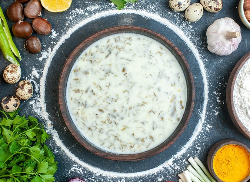 Yoğurdun birkaç gün bekletilip ekşimesi sağlandıktan sonra yapılan bu çorbanın içerisinde yarma buğday, un, yumurta sarısı, mercimek, kuru soğan, nane ve organik tereyağı da bulunuyor. Hem şifa hem de eşsiz bir lezzet kaynağı!